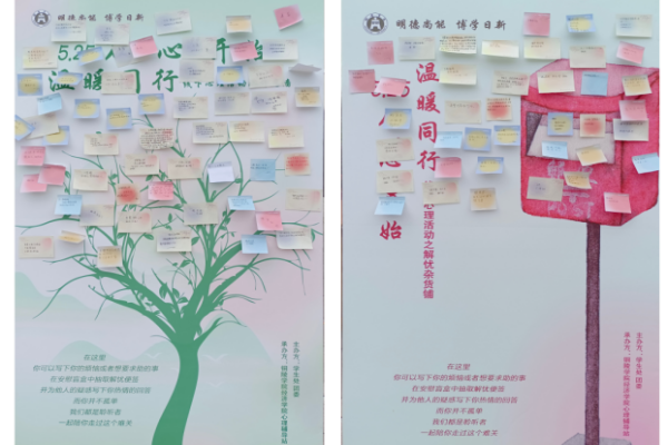 以“我心向阳 乘风而起”为主题的风车DIY创作,让同学们在创作中思考,在思考中沉淀,在沉淀中认识自我,维护心理健康,明确生命价值。结合学生心理特点开展“涂出‘心’颜色”活动,邀请师生与身边人一起绘画面具,大家用画笔画出“真实”自己,表达自我、展示自我,在涂鸦的过程中找到心灵的慰藉。通过“解忧杂货铺”引导学生写出平时疑惑,邀请他人进行解答,正视心理健康状况,正确表达对未来的期许,传播正能量。“许愿板”以“从心开始 温暖同行”为主题,参与者可将便签上写下的心愿贴在许愿板上,自由抒发内心所思所想。系列活动进一步提升了该院心理育人工作质量,塑造了大学生积极向上的心理品质。
