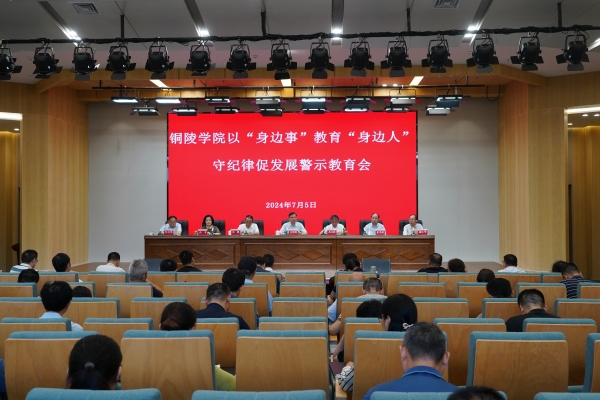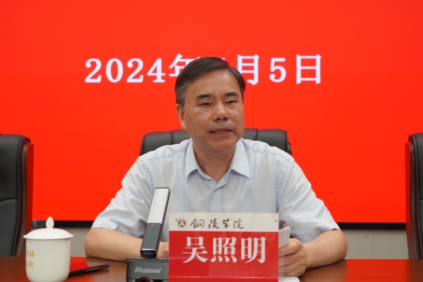 吴照明强调,要以党纪学习教育培育良好的工作作风,从而促进工作质效的不断提升,在硕士点立项建设、本科教育教学审核评估、党建质量提升年、教风建设年和学风建设年等重点工作上持续用力,切实让师生员工感受到党纪学习教育带来的新气象新变化。要用严格的纪律保障促进事业发展,注重统筹,学会“弹钢琴”,锚定地方应用型高水平大学建设目标和硕士点立项建设中心任务,围绕高质量应用型人才培养、学科专业结构调整、师资队伍建设、科学研究和社会服务能力提升、开放式办学等重点工作,坚定信心,铆足干劲,攻坚克难,统筹推进学校高质量发展和高水平安全,为打造“三地一区”、建设“七个强省”贡献铜陵学院力量。