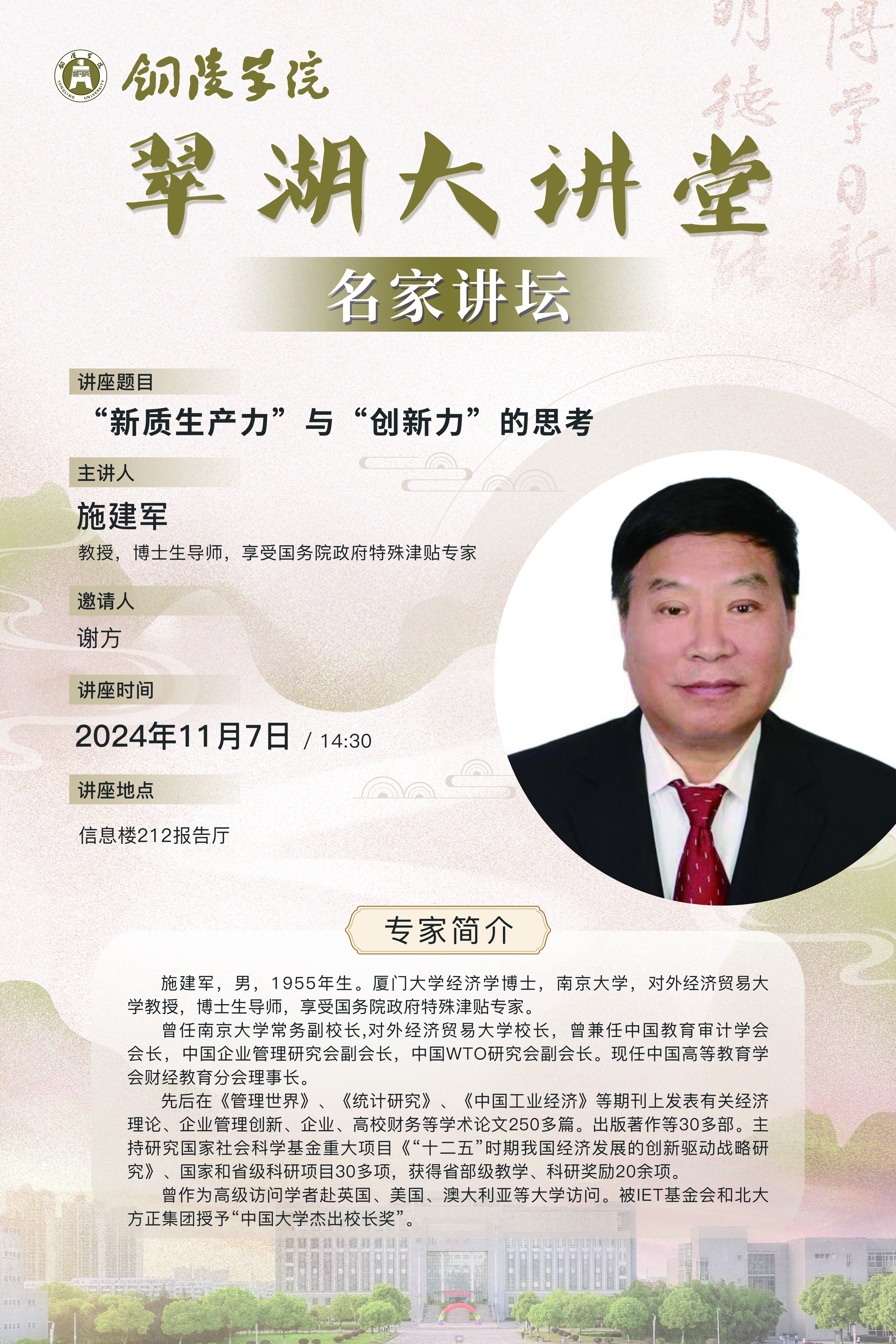 时间:2024年11月7日14:30;地点:翠湖校区信息综合楼212报告厅