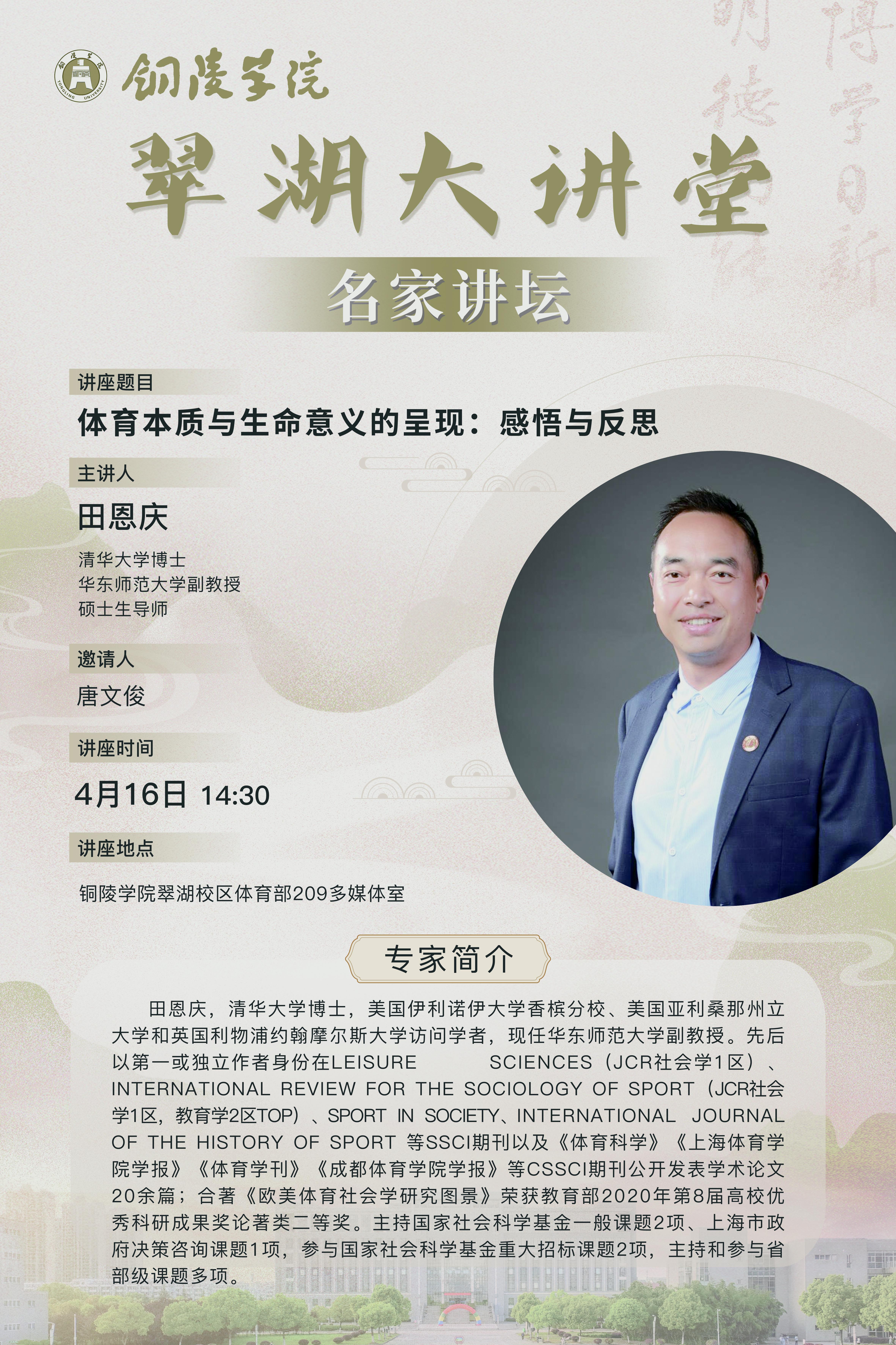 时间:2025年4月16日14:30;地点:铜陵学院翠湖校区体育部209多媒体室