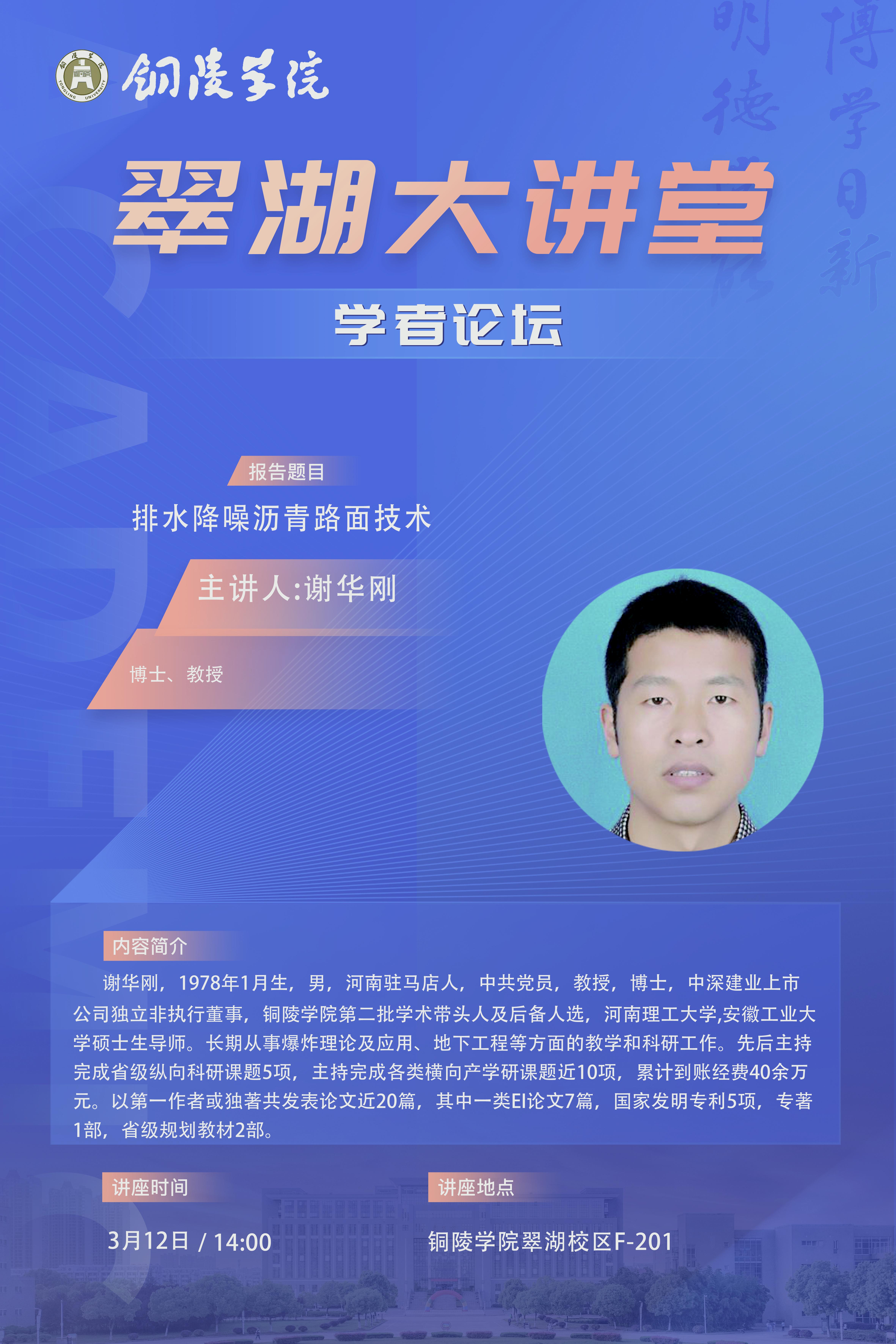时间:2025年3月12日14:00;地点:铜陵学院翠湖校区教学楼F-201