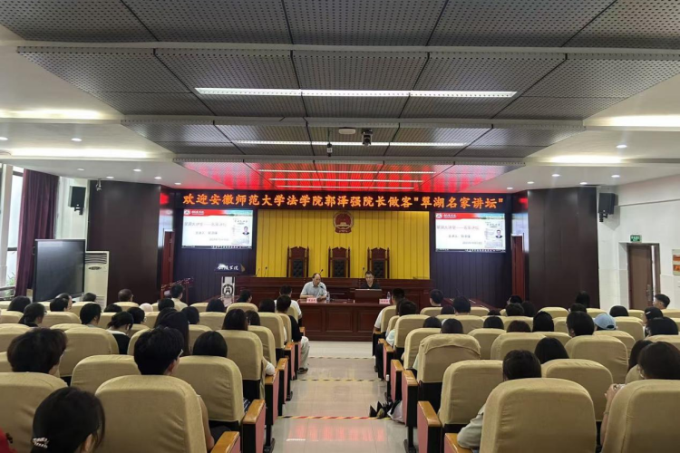 10月10日下午,安徽师范大学法学院院长郭泽强教授做客我校“翠湖大讲堂”名家讲坛。讲坛由校党委委员、副校长夏美武主持。法学院党政领导、法学专业师生共100余人参加活动。