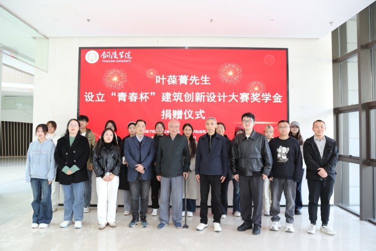 经与家人商议,叶葆菁先生决定捐出部分养老金,设立铜陵学院“青春杯”建筑创新设计大赛专项奖学金,回馈学校、助力学子成长,表达对学校发展和学生成才的美好祝愿。仪式上,叶葆菁先生深情回顾建筑工程学院由3位教师、37名学生发展至90多位教师、近2000名学生的历程。他忆及专业建设初期师生手编教材、共建原冶金工业学校“小礼堂”的艰辛岁月,动情表示:“我受学校涌泉之恩,今日仅是滴水相报。”