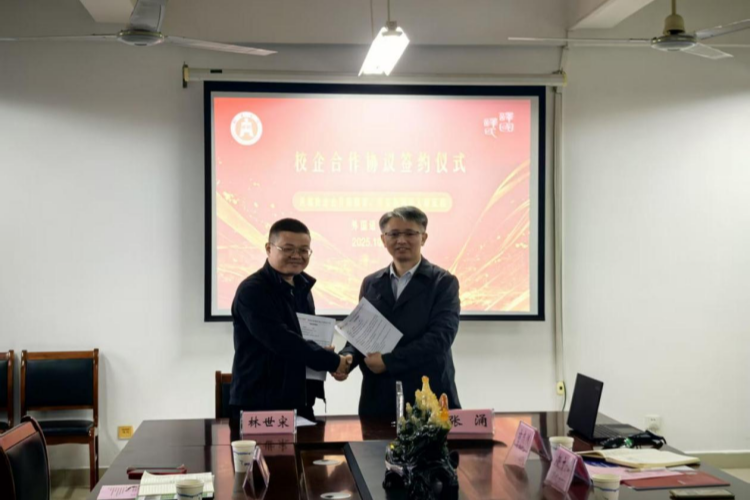 会上,外国语学院领导向林世宋颁发了《行业导师聘书》,双方签订了共建实习就业基地签约。