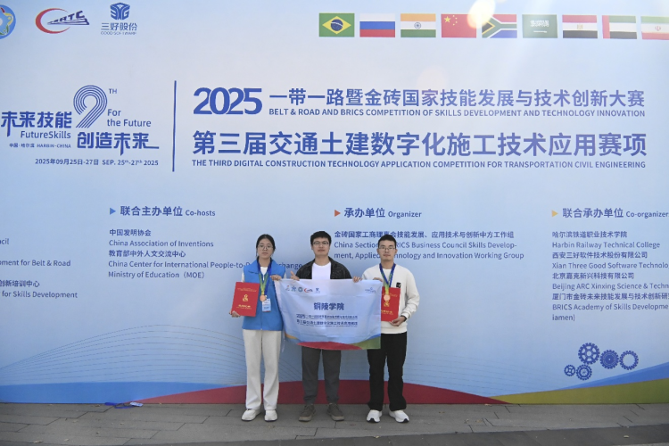 近日,2025“一带一路”暨金砖国家技能发展与技术创新大赛第三届交通土建数字化施工技术应用赛项决赛落幕。我校由建筑工程学院唐沛震老师指导的学生团队获该项赛事(本科组)决赛三等奖。