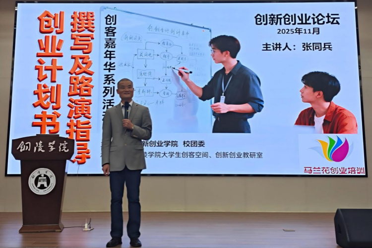 11月12日,作为2025年“创客嘉年华”系列活动的核心组成部分,创新创业讲坛在信息楼212报告厅成功举办。讲坛特邀国家级SYB、IYB、网络创业培训师张同兵先生担任主讲嘉宾,由创新创业学院副院长姚小烈主持。创新创业教研室成员、大学生创客俱乐部成员以及2025年创业培训学员等200余名师生齐聚一堂,共同聆听了讲座。