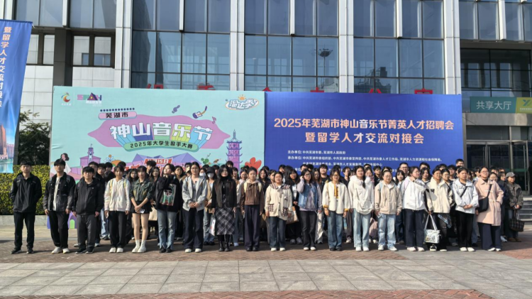 11月15日,2025年芜湖神山音乐节菁英人才招聘会暨留学人才交流对接会在芜湖宜居国际博览中心举行,学校组织96名师生参加招聘会。