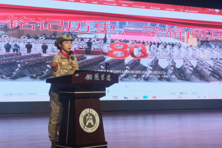 汪琪,某高校毕业生,2019年应征入伍,2021年退役复学,毕业后曾在南京蒸汽职业咨询有限公司工作。报告中,汪琪以一段九三阅兵的珍贵视频,将现场师生瞬间带回那个庄严神圣的时刻。她结合自身经历,深情回顾了受阅经历和训练日常,分享了训练期间的艰辛与荣光,生动诠释了新时代青年继承和发扬伟大抗战精神的责任担当。