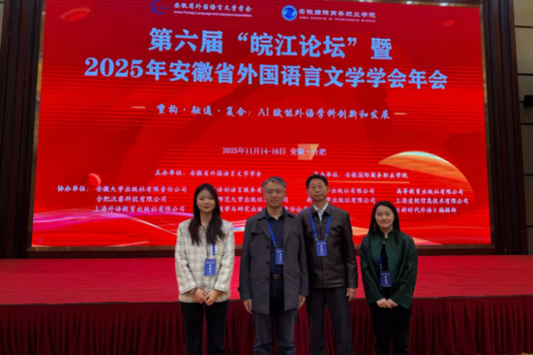 11月15日至16日,第六届“皖江论坛”暨2025年安徽省外文学会年会在合肥召开。本次会议汇聚了省内外高校外语专家学者、行业代表,以及来自一线的大中小学外语教师三百余人。我校外国语学院院长张涌一行四人应邀参加会议。