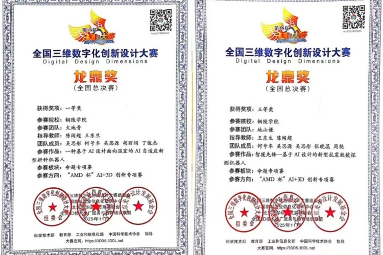 近日,第18届全国三维数字化创新设计大赛专项赛全国总决赛在北京圆满落幕。我校由机械工程学院陈闻超、王东生老师指导的学生团队在“AI+3D”创新专项赛中勇夺全国总决赛一等奖,另一团队获得大赛三等奖,实现了我校在该项赛事中国家级最高奖项的历史性突破。