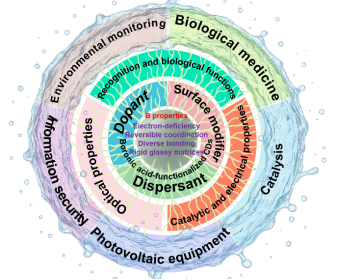 论文系统阐述了硼酸功能化碳点这一前沿领域的最新研究进展。首次深入剖析了硼酸作为掺杂剂、表面修饰剂和分散剂等不同功能化策略,揭示了硼酸功能化在提升碳点量子产率、增强传感选择性、优化催化性能及激发室温磷光等方面的作用机理,并展示了硼酸功能化碳点在环境监测、生物医学、信息安全和能源催化等领域的创新应用。