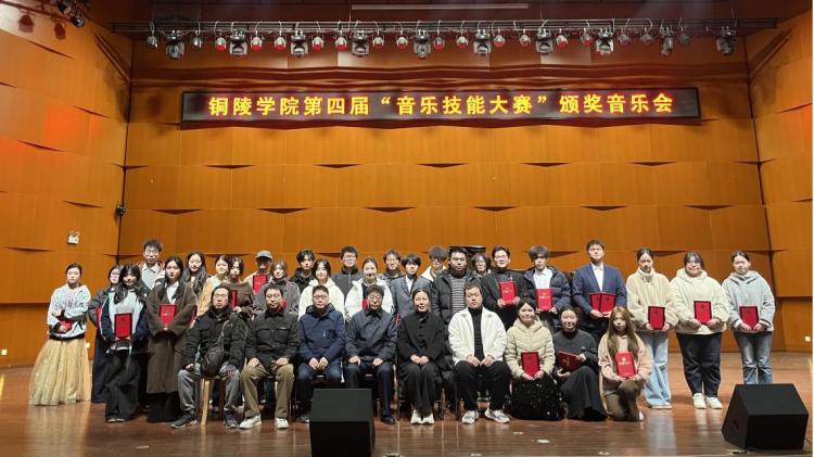 11 月 19 日晚,文学与艺术传媒学院在艺术楼音乐厅举办校第四届大学生音乐技能大赛颁奖音乐会。文学与艺术传媒学院党委书记裴吉慧、院长刘静、副院长黄晓东,以及音乐教研室主任田英杰、刘涛出席音乐会,并为获奖学生颁发荣誉证书。
