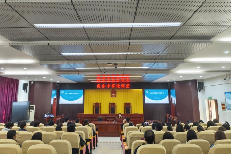 11月21日,法学院在模拟法庭举办大学生刑事法律风险防控专题讲座,邀请铜鼎律师事务所孙小玲律师做报告。