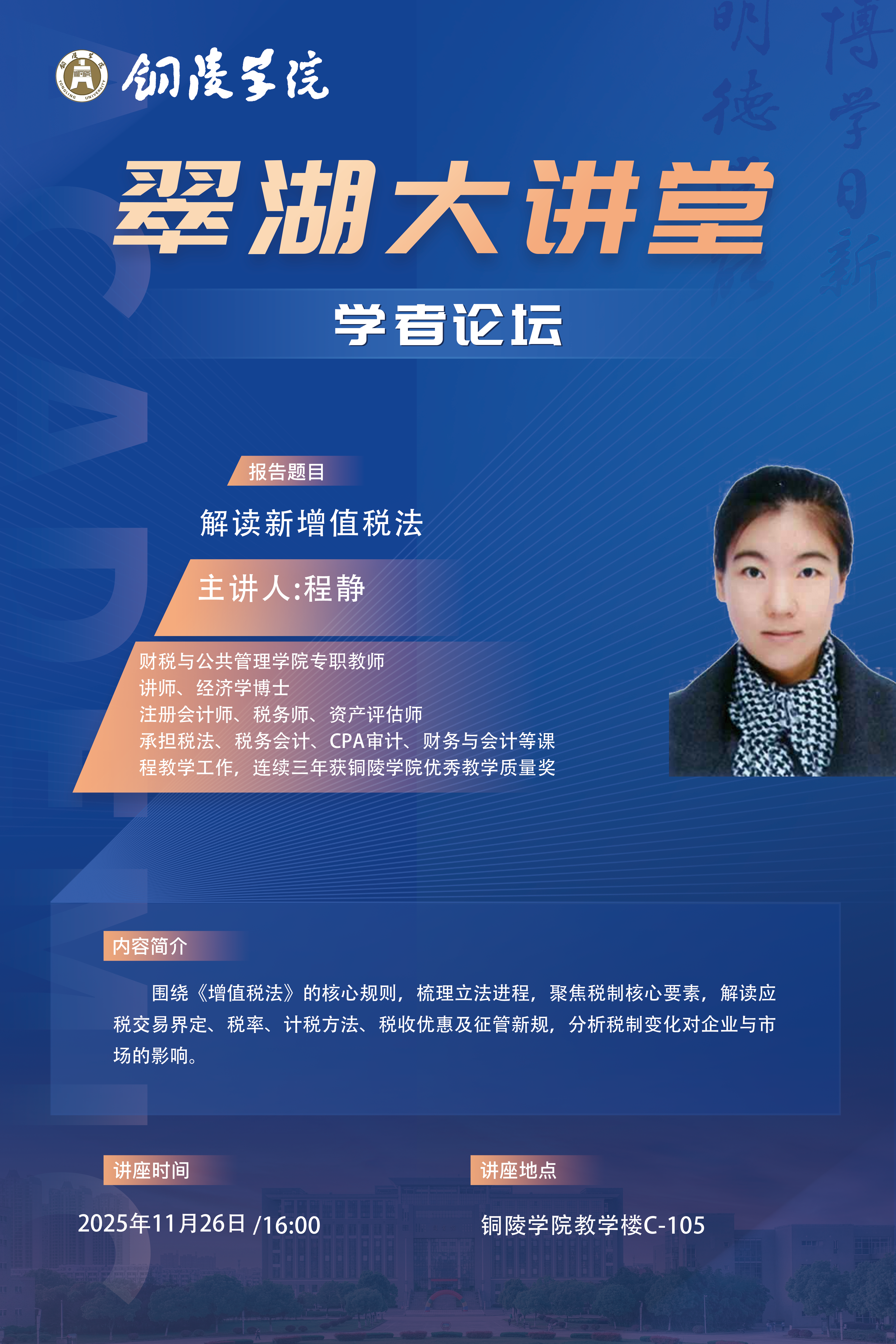 时间:11月26日16:00;地点:铜陵学院翠湖校区教学楼C-105