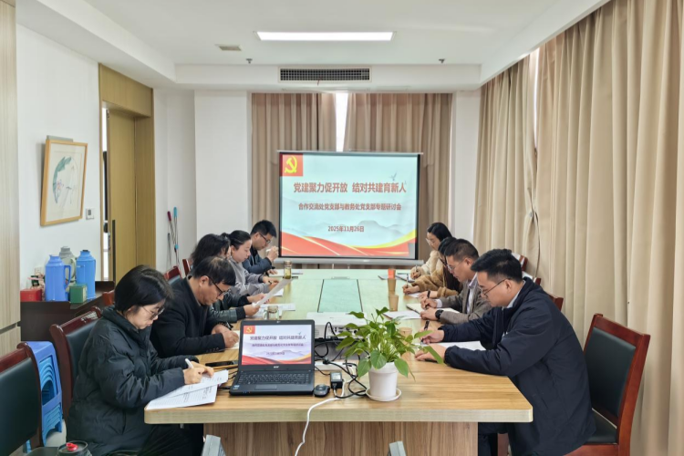 为加强党支部标准化建设,推动党建与业务深度融合,11月26日,校合作交流处党支部与教务处党支部联合召开主题为“党建聚力促开放 结对共建育新人”研讨会。合作交流处党支部书记刘珺、全体党员,教务处副处长徐向棋、部分党员参加活动。活动由刘珺主持。