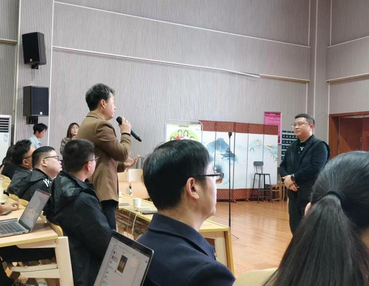 为进一步深化产教融合,赋能新媒体行业人才培养,11月25日,金寨视窗文化传播有限公司负责人、党支部书记、安徽省广播电视制作产业协会副会长储修军应邀到访学校文学与艺术传媒学院,在艺术楼排练厅开展行业交流专题分享会。文学与艺术传媒学院院长刘静主持分享会并致辞。市互联网协会、市潮星・红创网络科技公司、九鼎传媒等互联网企业,以及我院师生代表共同参会。