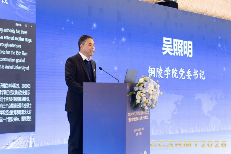 吴照明代表承办单位致辞,向与会专家学者和青年才俊表示热烈欢迎。他介绍了学校的办学历史与特色,并着重阐述了学校当前围绕申报硕士点、深化教育思想观念大讨论、推进“工商一体化”发展、加快建设地方特色高水平大学目标所开展的重点工作。他诚挚邀请各位专家学者和优秀青年人才加入铜陵学院,共同为学校高质量发展贡献力量。
