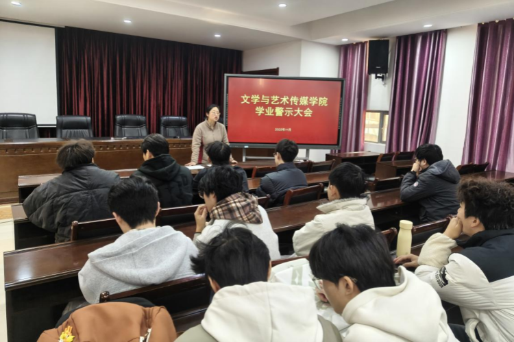 为深入贯彻落实立德树人根本任务,持续推进学风建设,进一步强化对学业困难学生的关怀与引导,11月27日,文学与艺术传媒学院在艺术楼会议室召开2025至2026学年第一学期学生学业警示教育大会。学院党委副书记高菲主持会议,各年级辅导员及相关学业预警学生参加会议。