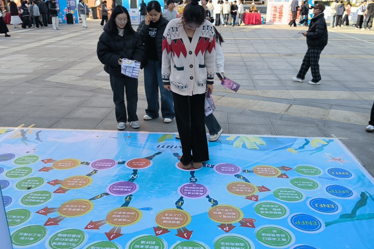 活动现场精心设置了自我展望区、自我探索区、生涯规划区、外部探索区、就业意识区、AI就业赋能区和礼品大放送等七个模块,以创新闯关游戏为载体,摒弃枯燥的理论灌输,将自我认知、职业探索、目标拆解等职业生涯规划核心要素巧妙融入游戏中,通过沉浸式体验,引导学生主动思考未来发展方向,明确个人定位与行动路径,进而科学搭建职业生涯发展框架。