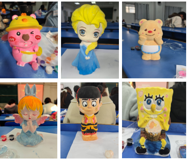 作为本次活动的亮点环节,手绘石膏娃娃活动为同学们提供了一个自由表达、放松心灵的创意平台。活动现场准备了丰富多样的石膏模型与绘画材料,同学们纷纷执笔调色,将内心的情绪、想象与愿望凝聚于笔尖,转化为一个个独具个性、色彩斑斓的作品。在专注创作的过程中,紧张的学业压力得以暂时搁置,取而代之的是沉浸于艺术表达的宁静与愉悦。这一环节不仅锻炼了学生的动手力与创造力,更营造了一次生动的非语言情绪疗愈体验。