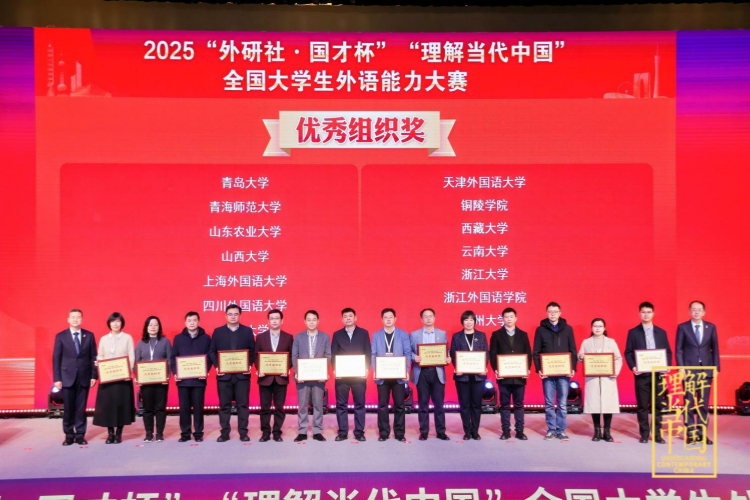 12月8日,2025“外研社·国才杯”“理解当代中国”全国大学生外语能力大赛在北京外国语大学圆满落幕。我校荣获大赛“优秀组织奖”,由教育部高教司副司长武世兴、北京外国语大学校长(大赛组委会主任)贾文键颁发奖牌。学校外国语学院副院长汪春成参加颁奖仪式。