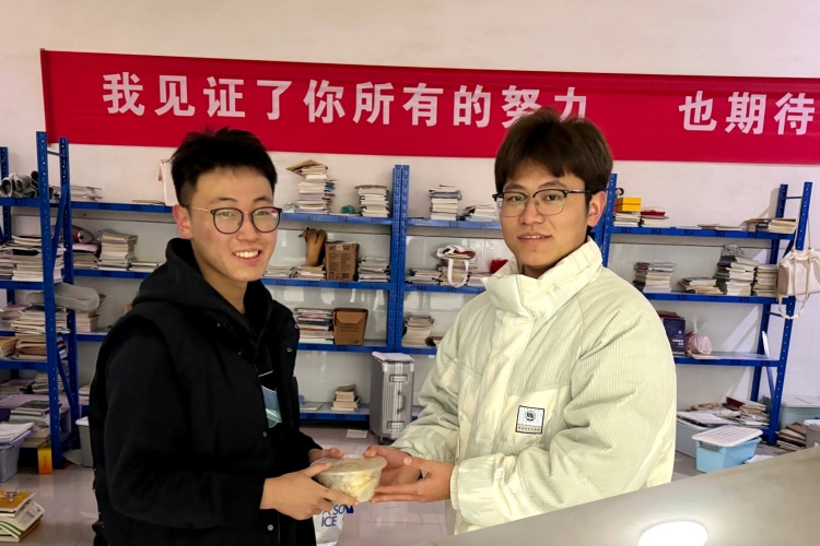 活动最后,学弟学妹们特意将部分煮好的饺子打包成“暖心餐盒”,送往考研自习室。一份份热气腾腾的饺子,伴随着“考研顺利”“一战成硕”的真挚祝福,为紧张备考的学子增添了温暖与力量。