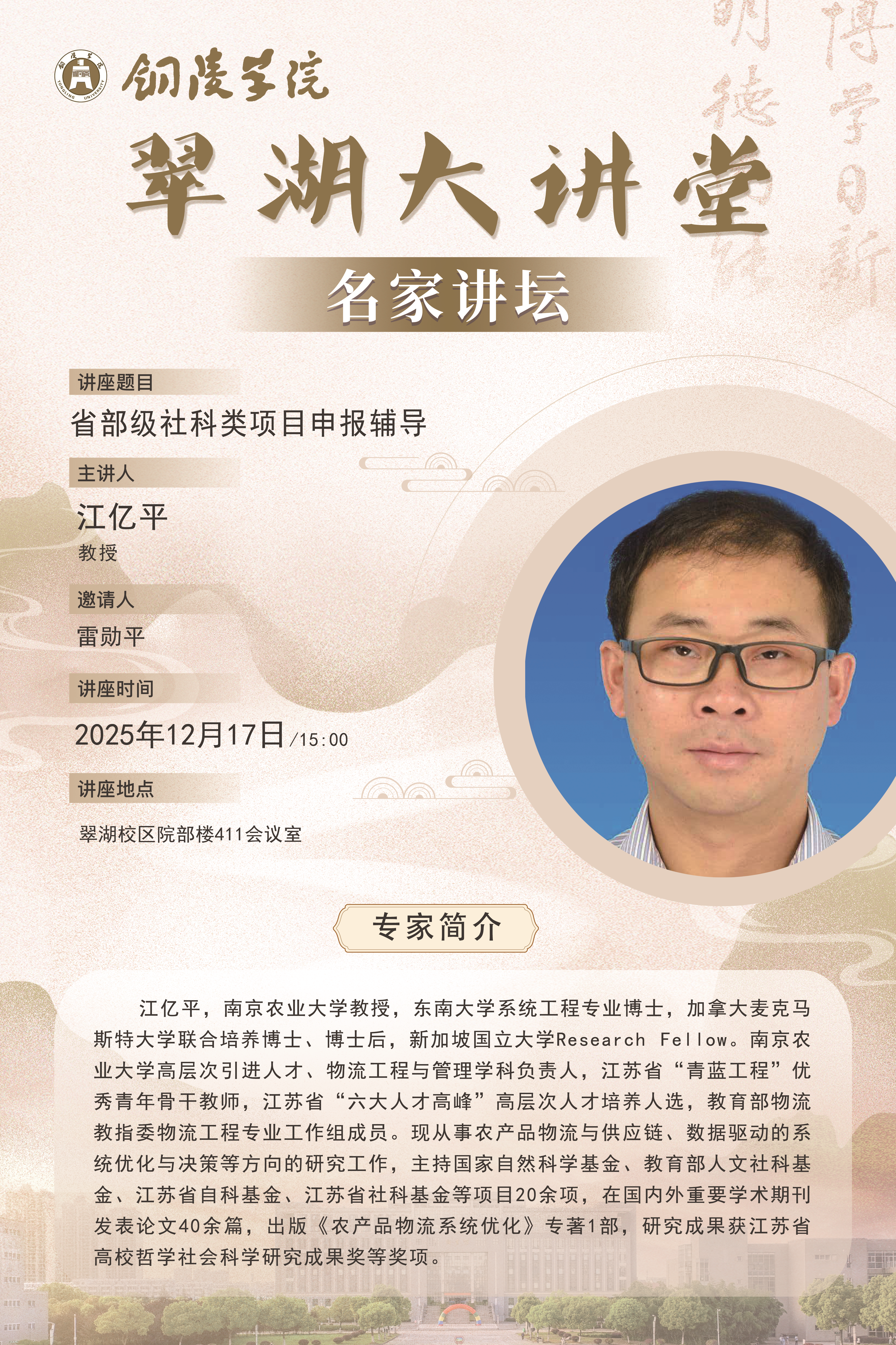 时间:12月17日15:00;地点:翠湖校区院部楼411会议室