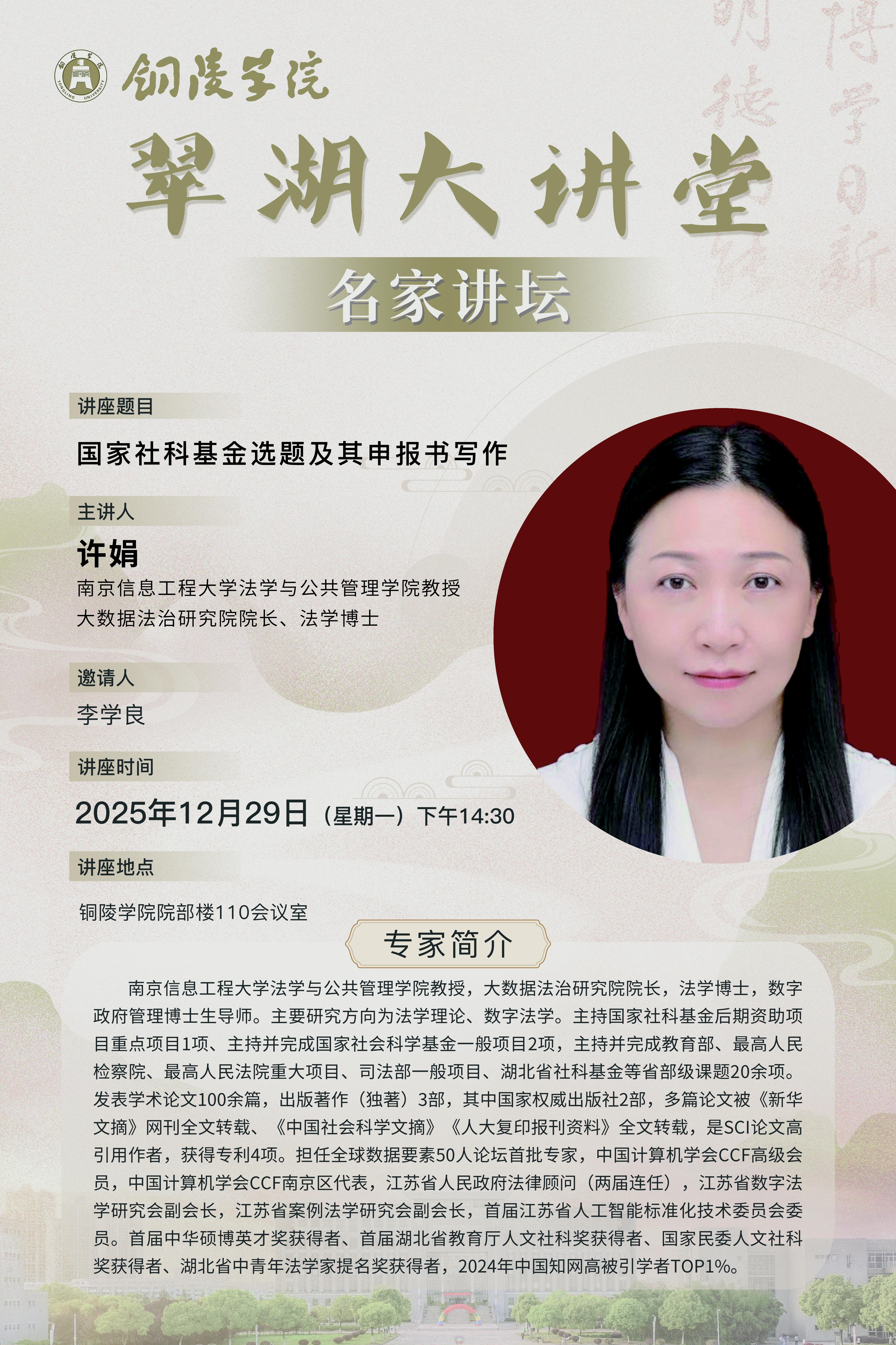 时间:12月29日14:30;地点:翠湖校区院部楼110会议室
