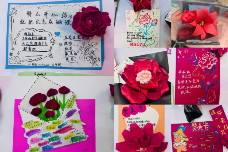 此次活动围绕“制作‘心’意小红花”与“书写‘心’理赞美卡”两大环节,同学们充分利用身边随手可得的材料,亲手制作出一朵朵象征积极心态与温暖情谊的“心”形小红花,花中的每一片花瓣都承载着制作者的真挚心意与美好祝福,让抽象的情感有了具象可感的艺术表达。