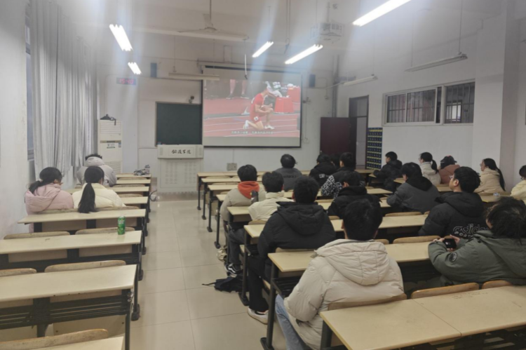 集体学习后,学生们共同观看了体育题材影片《破风》、东京奥运会乒乓球混双决赛和苏炳添百米突破赛事等影视频。银幕上运动员们突破极限的瞬间引发现场阵阵掌声,大家在沉浸式体验中深刻感悟拼搏坚持、尊重团结等体育精神。其中,苏炳添32岁仍坚持改技术动作,这种“归零再出发”的勇气让大家表示即使期末复习备考的压力再大,也不会放弃锻炼。