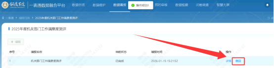 2.点击“数据填报”-“填报任务”-“2025年度机关部门工作满意度测评”