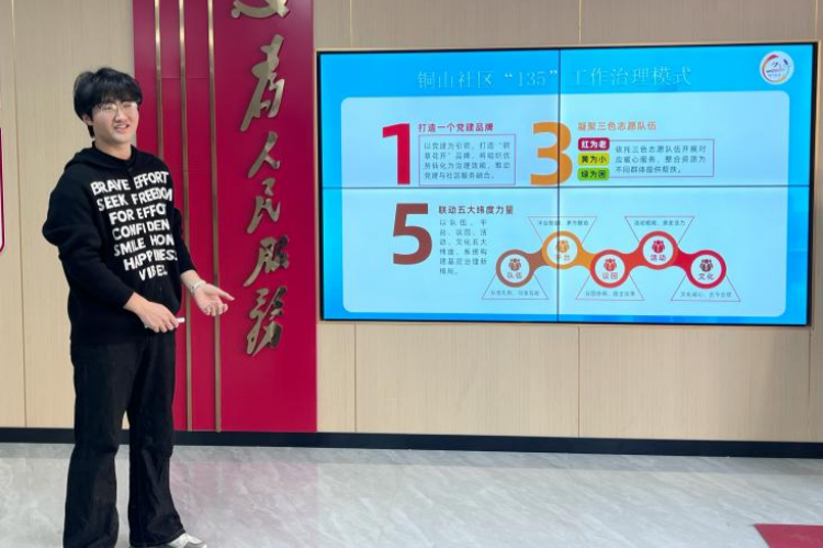 交流中,铜山社区党委副书记佘婷婷对尹仔文的工作表现给予高度评价,称赞他踏实肯干、勇于创新。她表示,尹仔文探索推行的“135 工作治理模式”,即打造一个党建品牌、凝聚三色志愿队伍、联动五大纬度力量,有效推动社区治理向数字化、信息化转型,其提出的多项“金点子” 切实破解基层工作难题,赢得社区干群广泛好评。她同时对我校文学与艺术传媒学院人才培养质量予以充分肯定,表达了深化校地合作的期望。