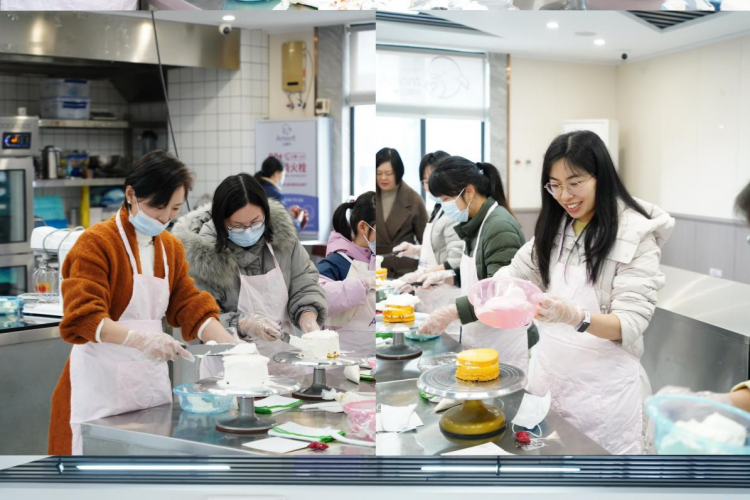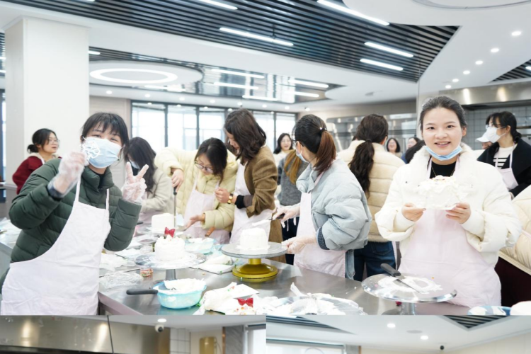 女教职工们参观了艾檬特工厂店生产车间,满怀期待地参与蛋糕DIY体验活动。活动中,平日里深耕讲台、严谨治学的女教职工们,化身创意满满的烘焙师,在欢声笑语中沉浸式体验动手乐趣。朴素的蛋糕坯在大家的巧手下,逐渐变成造型别致、香气诱人的精美作品,现场氛围温馨融洽。