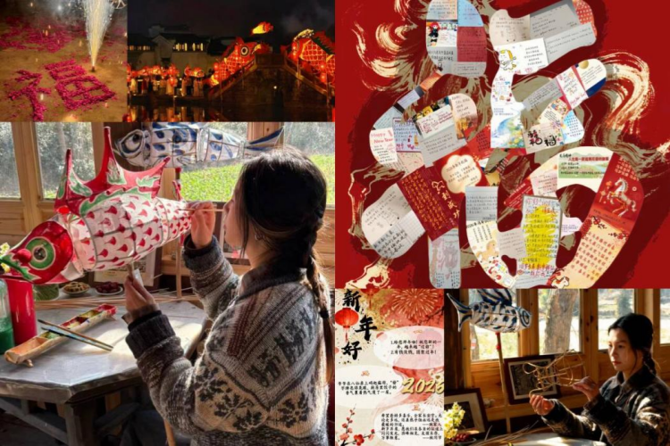 为探寻藏于皖乡烟火中的美学真谛,语言与传播学院学子将“美育鉴赏课”的课堂延伸至乡土大地,以创意为笔、年味为墨,解锁多元美育表达。他们有的开展新年留言便签活动,将满含祝福的便签拼缀成“福”字,让青春寄语汇聚成新春图腾;有的精心设计新年贺卡,以手绘民俗场景传递团圆期盼;有的用镜头定格古村灯展的璀璨与烟花盛放的浪漫,在光影中捕捉传统年味的视觉诗意。从便签拼贴的温情创意到镜头记录的烟火美学,学子们在沉浸式体验中感悟传统之美,让美育之花绽放在新春实践的沃土上。