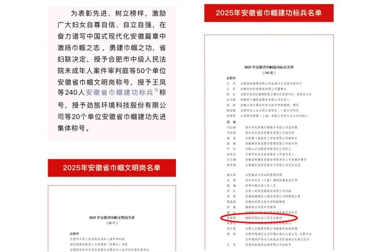 安徽省巾帼建功标兵是为表彰各行各业爱岗敬业、实干担当、贡献突出优秀女性而设立的重要荣誉,旨在发挥先进典型示范引领作用。结合巾帼建功行动实际表现,经中共安徽省委社会工作部研究,提名推选我校张甜甜老师参评。学校党委高度重视,严格按照评选标准、流程,积极配合省委社会工作部开展材料审核、事迹核查等工作,全力支持其参评。