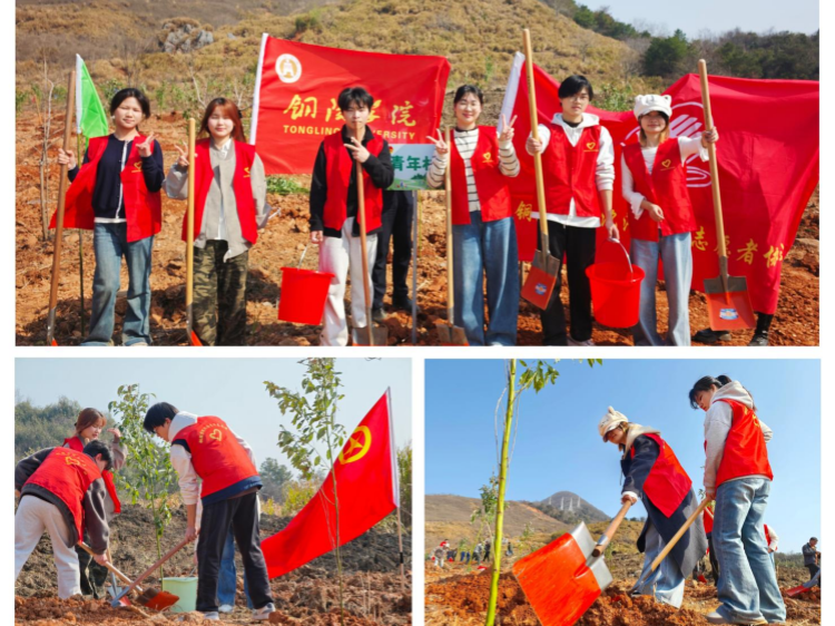 挥锹添新绿,青春护生态。 3月11日,校团委联合铜陵市郊区团委,组织青年志愿者赴大通镇金华村开展义务植树活动,共同打造特色“青年林”,引导青年走出校园、躬身实践,深刻领会“绿水青山就是金山银山”的重要内涵,强化生态环保意识与社会责任担当,带动更多青年争做生态文明的参与者、推动者、守护者。植树中,志愿者们分工协作、有序劳作,栽下新苗、培土浇灌,以实际行动践行绿色发展理念,为城市生态建设注入青春动能。