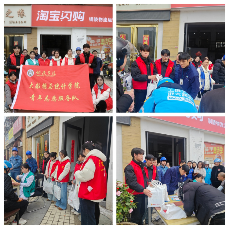 志愿服务进社区,便民惠民显真情。学院联合铜陵市工会、市立医院、铜陵供电公司、铜陵港华燃气,走进铜陵淘宝闪送驻点,为外卖骑手送上一站式便民服务。现场开展健康义诊、血压测量、常见病咨询与用药指导,守护城市奔波者的健康;同步普及燃气安全、用电规范知识,提供免费上门检修预约,把安全与温暖送到骑手身边。志愿者们以实干诠释担当,用服务传递温暖,让雷锋精神在基层服务中落地生根、见行见效,以实际行动关爱新就业形态劳动者,书写新时代雷锋故事。