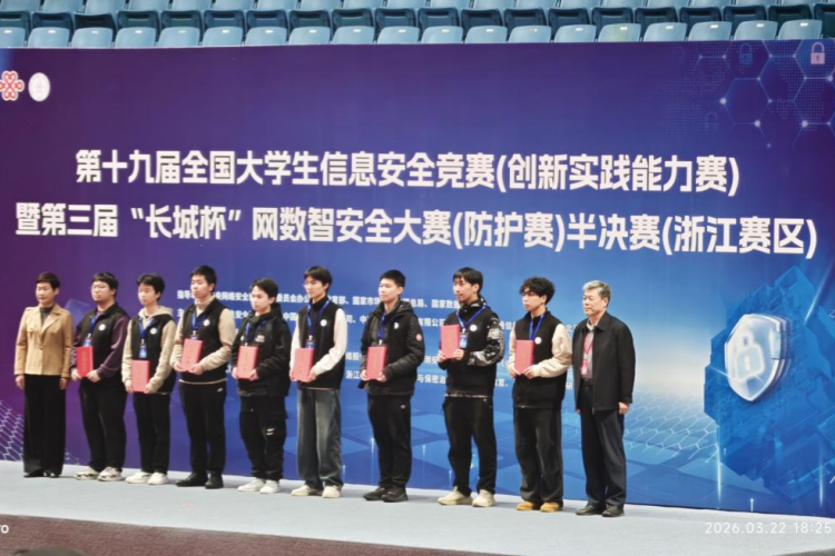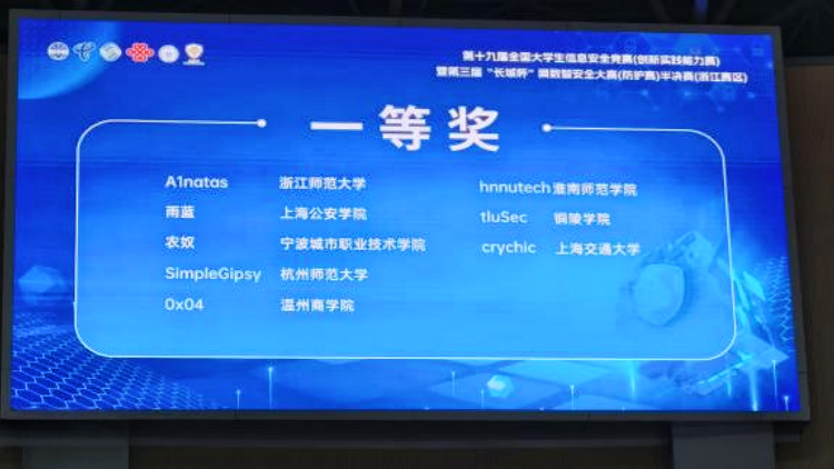 3月22日,第十九届全国大学生信息安全竞赛(创新实践能力赛)暨第三届“长城杯”网数智安全大赛(防护赛)半决赛(浙江赛区)在杭州电子科技大学圆满落幕。我校人工智能学院tluSec战队凭借扎实的专业素养和出色的临场发挥,从众多参赛队伍中脱颖而出,荣获赛区一等奖。