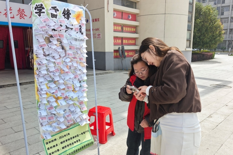 学院志愿者们在翠湖校区一食堂门口设立宣传点,开展雷锋精神主题宣传活动,向过往同学派发宣传单、讲解雷锋事迹,引导大家在心愿墙上写下助人承诺,通过知识问答的形式普及雷锋故事,让雷锋精神更贴近学生,在校园里营造奉献互助的良好氛围。