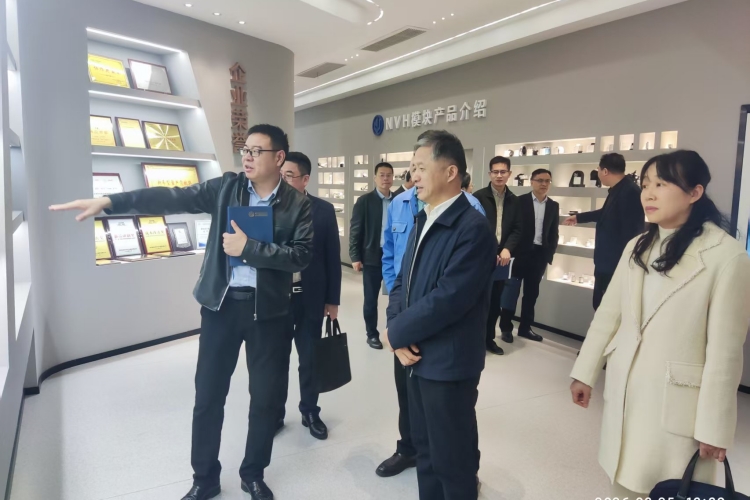 在副总经理蒋伟坚的陪同下,苏本跃一行走访了中鼎密封件股份有限公司,实地了解中德小镇相关企业的生产管理及第九期“中鼎班”学生企业实践等情况。