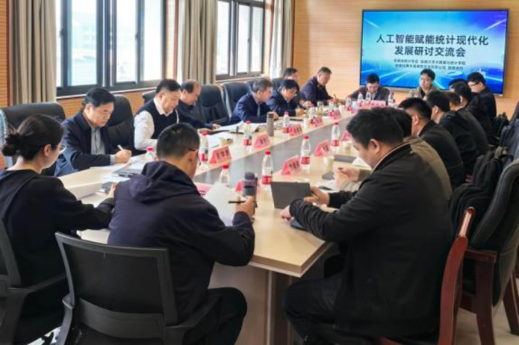 2026年4月1日,由安徽省统计学会、安徽大学大数据与统计学院、安徽经典市场调查咨询有限公司联合主办的人工智能赋能统计现代化发展研讨交流会在安徽大学顺利举办。学校大数据与统计学院党委副书记胡元春、副院长吴永锋、经济统计学教研室主任王珺受邀参会。