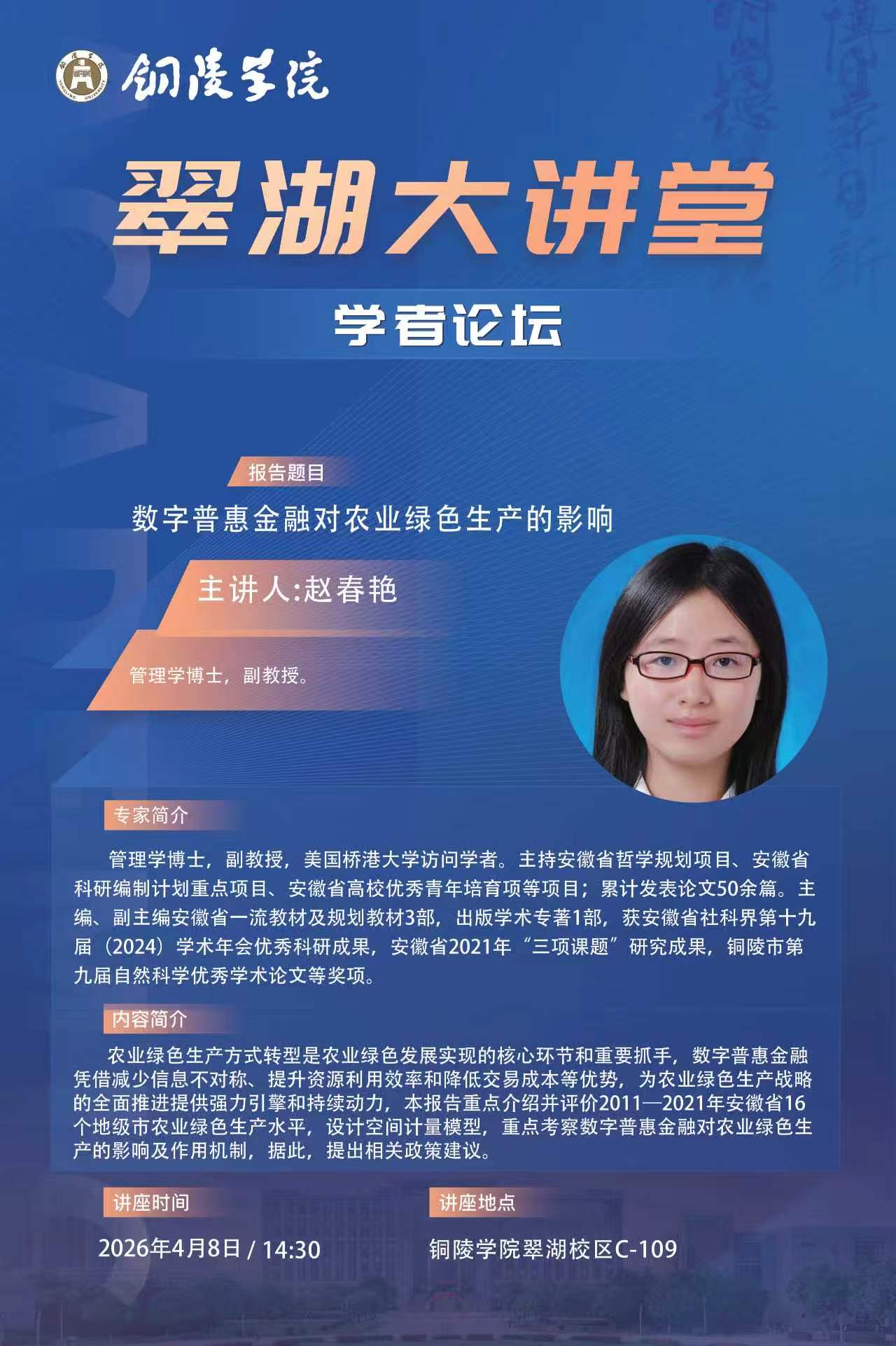 时间:4月8日14:30;地点:翠湖校区教学楼C-109