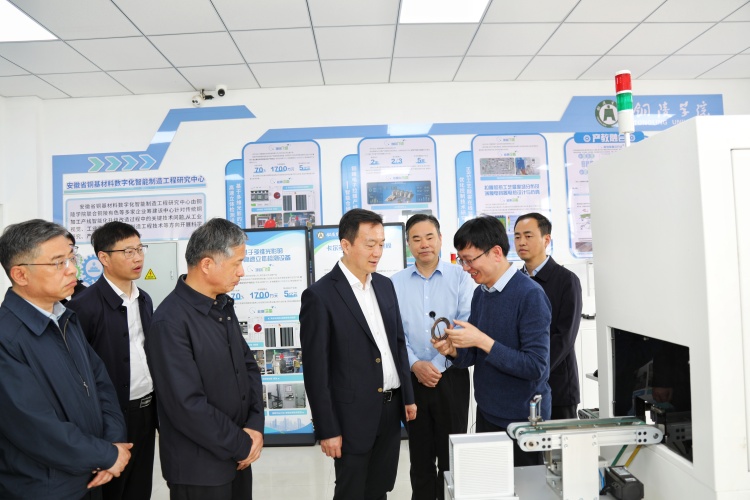 孔涛实地察看了安徽省铜基材料数字化智能制造工程研究中心,听取了中心负责人关于核心算法自主化程度、检测装备在铜基材料生产中的实际检测精度与效率、智能机器人与现有铜加工产线的适配性及试点应用场景等情况汇报。他对该中心紧密结合铜产业发展,在工业视觉、工业具身智能等方面进行科研攻关及成果转化所取得的成效表示高度认可。
