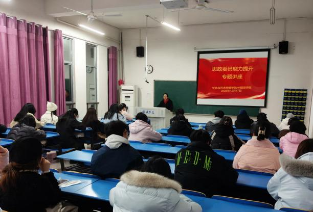 为进一步提升班级思政委员履职能力,充分发挥他们在班级思政教育中的桥梁与纽带作用,12月17日,文学与艺术传媒学院、外国语学院在艺术楼南203教室,共同举办班级思政委员履职能力提升专题培训活动。活动由文学与艺术传媒学院党委副书记高菲主持,邀请马克思主义学院郭华鑫、高娇娇两位老师主讲。两个学院的辅导员代表、50余名班级思政委员参加活动。