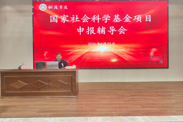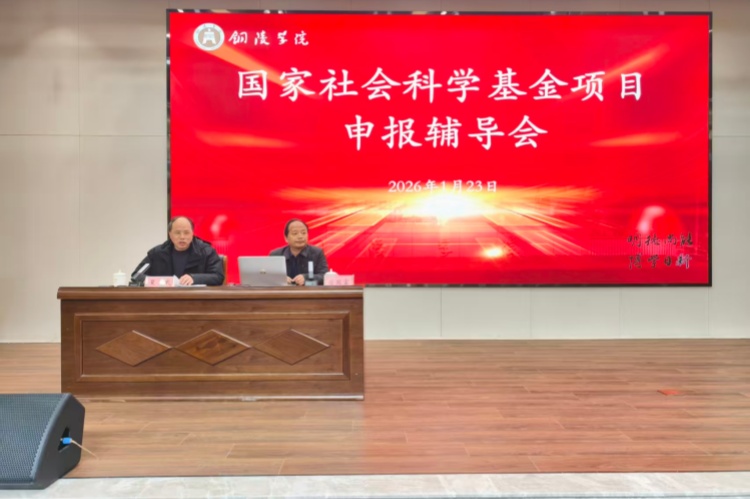 1月23日下午,学校召开2026年度国家社科基金项目申报辅导会。会议邀请中共安徽省委宣传部理论处一级调研员唐国富,安徽大学人文社会科学处处长、博士生导师李静教授作辅导报告。校党委书记吴照明、党委副书记、校长苏本跃会见两位专家。党委委员、副校长夏美武主持报告会并讲话学校人文社科类教学院部行政负责人、科研秘书、拟申报国家社科基金项目的150余名科研骨干参加会议。
