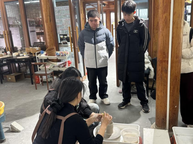 实践团队来到和悦。这里的年轻店主怀揣对家乡的深情,毅然返乡创业,克服资金、技术等诸多困难,将传统陶艺与现代审美相结合,打造出独具古镇特色的陶艺作品。店主向学子们分享了自己返乡创业的历程,从选址装修到产品研发,从打开销路到带动周边群众就业,每一步都凝聚着对家乡的热爱。这份扎根基层、反哺家乡的担当,让学子们看到了青年一代在乡村振兴中的力量,也激发了大家返乡创业、服务基层的热情。