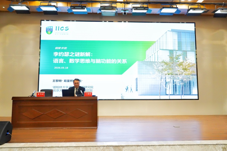 在校访问期间,王黎明教授作题为《李约瑟之谜新解:语言、数学思维与脑功能的关系》的学术报告。报告中,王黎明从语言、数学思维与脑功能的全新视角出发,深入剖析了“李约瑟之谜”,系统阐释了中文与西方语言差异对数学思维模式及大脑神经机制的影响,揭示了语言结构与科学发展之间的深层关联。报告内容横跨语言学、神经科学、数学史与科技发展等多个领域,视野宏阔、见解独到,为在场师生带来了一场跨学科学术盛宴。