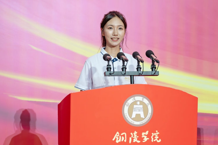 在校生代表、工商管理学院2022级电子商务专业张乐同学分享了在校期间的学习生活与感悟,希望学弟学妹能够明志定向、勤学善思、躬身实践,努力成长为具有铜院特质的时代新人。