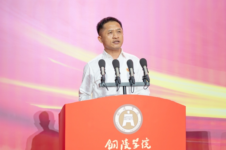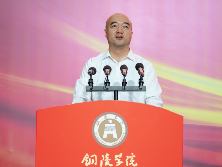 孔涛在致辞中代表市委、市政府向全体新同学表示热烈欢迎,向辛勤耕耘在教育一线的全体教职员工致以崇高敬意。他指出,铜陵学院坐落于八百里皖江之畔,不仅是培养高素质应用型人才的摇篮,更是铜陵这座城市创新发展的重要引擎和宝贵财富。多年来,学院坚持立德树人根本任务,为国家和地方培养输送了一批批栋梁之材,为铜陵经济社会发展作出了重要贡献。孔涛寄语新生,要志存高远、胸怀家国,把个人成长融入国家发展和民族复兴,自觉成长为可堪大任的时代栋梁。要勤学善思、锤炼本领,扎实打好专业基础,拓展知识边界,培养综合素养,努力成长为知识、能力、素质兼备的卓越人才。要修身立德、陶冶情操,在大学期间锤炼品德、健全人格,既要畅游书海,也要走出校园,亲身感受铜陵这座城市的发展脉搏,进而喜欢铜陵、爱上铜陵,未来选择铜陵、扎根铜陵,成为展示铜陵与铜陵学院良好形象的优秀使者。